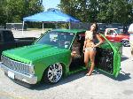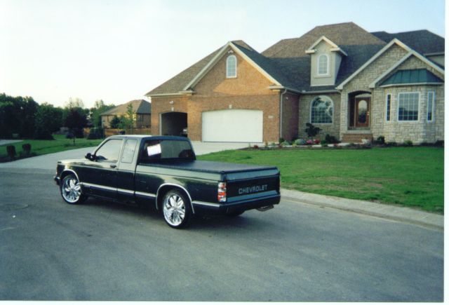 2,600 lb firestone bags on all 4 corners, triangulated 4 link, 10 switches, 1/2 fill 3/8 dumps w/ 1/2 lines, 2 viair 450 compressors, 2 5 gallon air tanks, 15 gallon aluminam fuel cell, tubbed, 2" drop spindles, tubed framing from cab back done by Trend Setter Customs in Dayton, Ohio