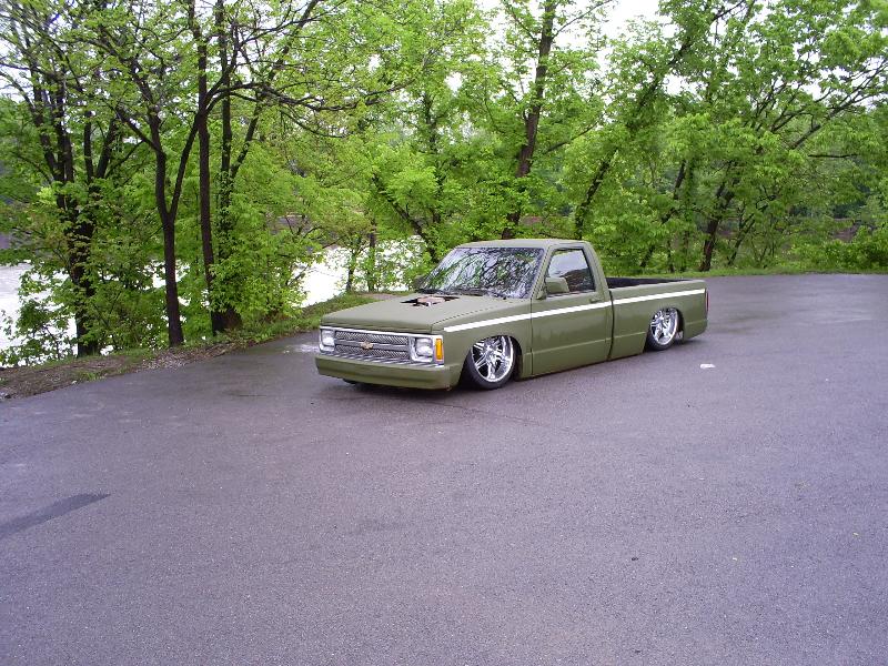 KW arms upfront with slams, backhalf with triangulated four-link with slams on uppers. 8 gal. tank under bed with all stainless braided hyd. line. Frame is completely smoothed and boxed. Trad. BD laying rocker very hard.