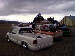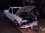 Body is straight as an arrow, 2-stage paint re-sprayed stock white, tubbed bed also repainted stock white with clear. suspension components sprayed in gloss black. grant customs smooth roll pan, shaved 3rd brake. plate bracket mounted off bed.