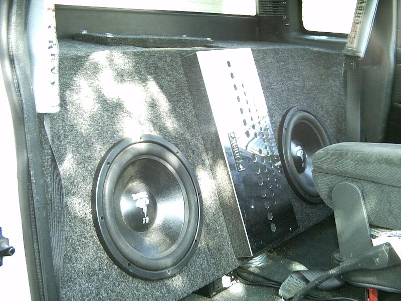 Deck plate speakers 6 1/2s and amp for his are all Eclipse for bass I got a Xtant 1001X and 2 cutting edge audio 12s 2 eclips 6 1/2 2 plate speakers