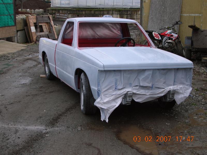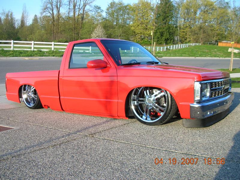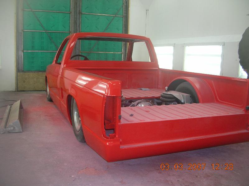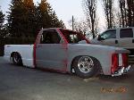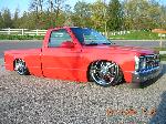 3 inch body drop, shaved door handles, rollpan, smooth tailgate and relocated handle. Smooth firewall, tubbed out front and rear end. Converted to 91-93 front end