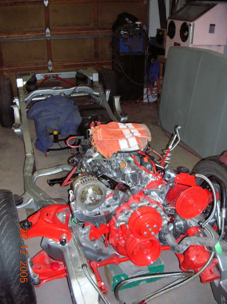 V6 2.8L....lots of chrome parts, edelbrock headers and air cleaner, motor drop 3/2inch so I didnt have to go with a cowl hood.