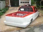 4.3 liter vortech v-6 with air intake, tubbed and shaved firewall, trailer fenders.