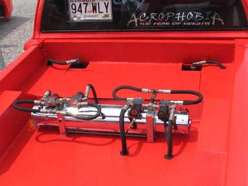 3.25 in. bodydrop and 2 all chrome pumps with whammy tank, and streetcharger, 2 link in the rear.