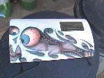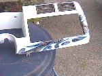 old skool Alter Images billet steering wheel, billet window cranks, Trenz billet flame rearview mirror,97 blazer seats, center console, painted white dash panel w/ graphics.