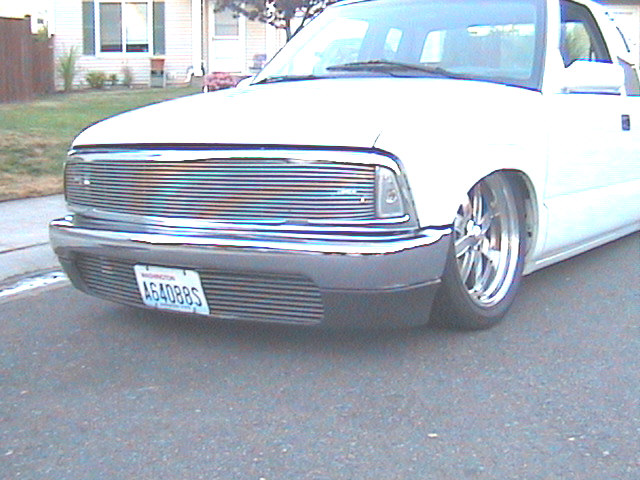 Front clears,back euros, phantom grille, 2000 front and back chrome bumpers, street scene mirrors, smooth wiper cowl, Checkmate toneau.jus got some linex style shit in the bed now.shaved the gas door.sheved the tailgate handle.