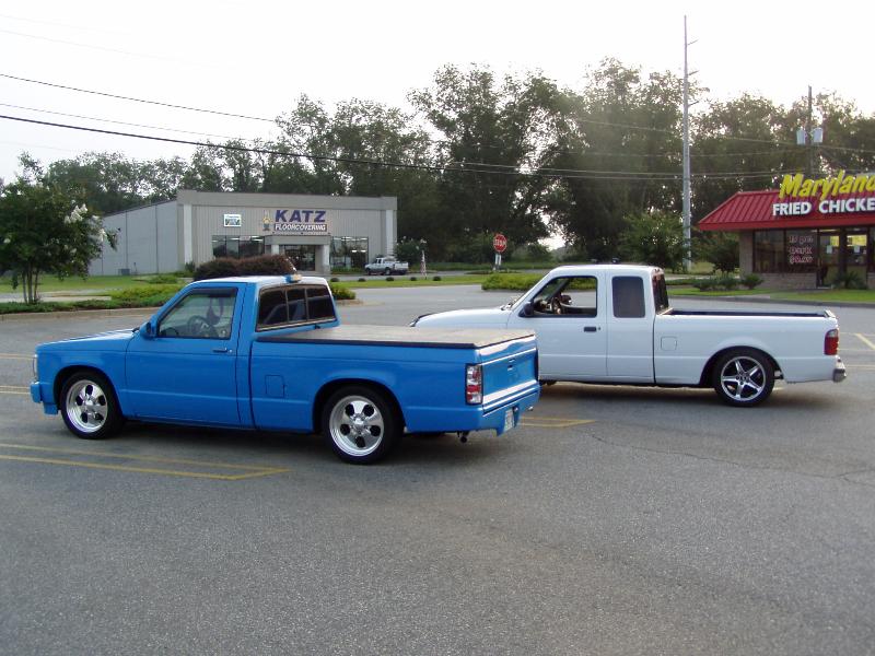 fiberglass rollpan, euros, full phatom billet, m3 mirrors, smurf blue paintjob, clears, black rainguards, window tint