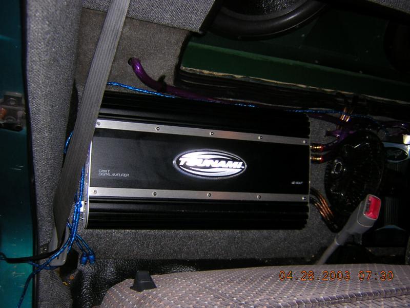 2 armmagedon 15's 2 BATTS. STINGER 150 ALT. TSUNAMI 1800T, DB4440, AND STINGER 3 FARAD CAP, TOTAL WATTAGE- 2220 WATTS