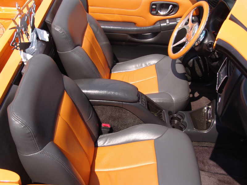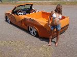 Sonoma Front End, Cowl Hood, Billet Wipers, Motorcycle Mirrors, Clean Shaven, Stepside Bed Shaved and Molded, Tailgate Skin Molded, Cadillac Taillights, Two-Tone Bright Orange/Burnt Orange, Graphic Stripe, Roadster