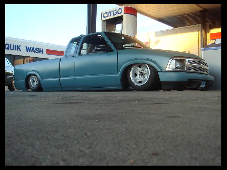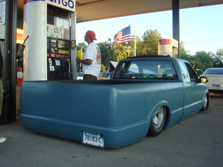 Shaved 3rd brake light, gas filler, door handles, windshield washer pissers, taillights, and antenna. Custom Hi-Tech L.E.D.s installed in the Cali Combo and custom tubs in the bed. Sport Mirrors, clear corners, chrome license plate holder, and billet inserts. New '98 style front bumper and valance. Tubbed and smoothed out bed. Also a 35x35" sliding ragtop from Street Beat Customs. One piece solid wiper cowl from Stylin' Concepts. Oh yea, Long Bed Conversion.