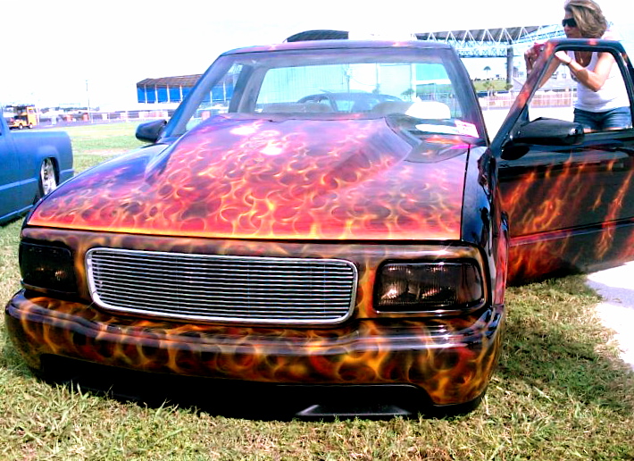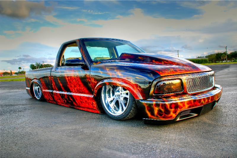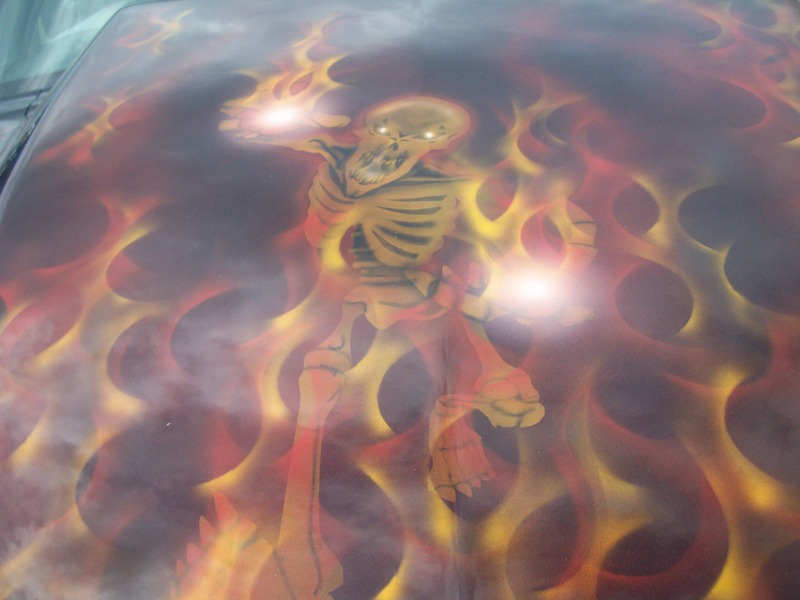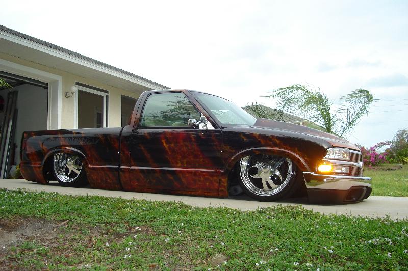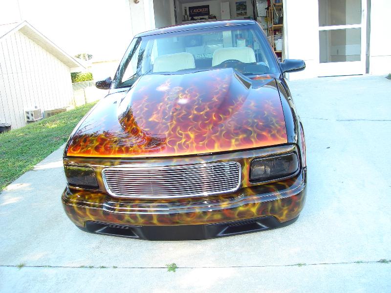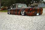 4' bodydrop, 4' custom cowl hood. Paint job done by John Burrough at Unique Auto Body in Melbourne Florida. Pinstriping done by Mikey.