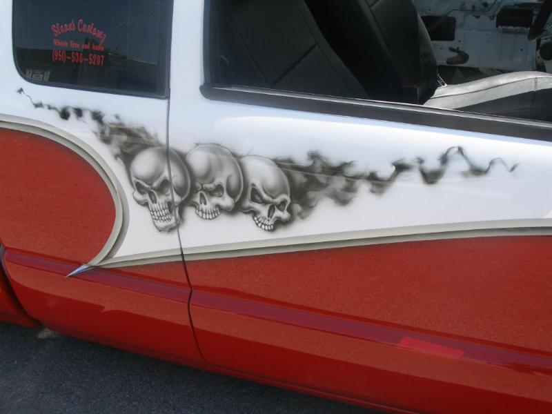 red/white 2 tone with airbrush work done by extreme audio and kustoms riverside ca.(Matt Hutchinson)