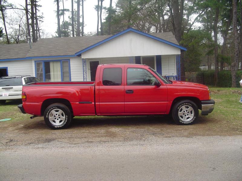 Victory Red, shaved all moldings, emblems, Roll pan, tailgate handle flip, Lo Rider bed cover, Escalade handles, painted mirrors and bumper plastic, Billet step plates, Billet grill