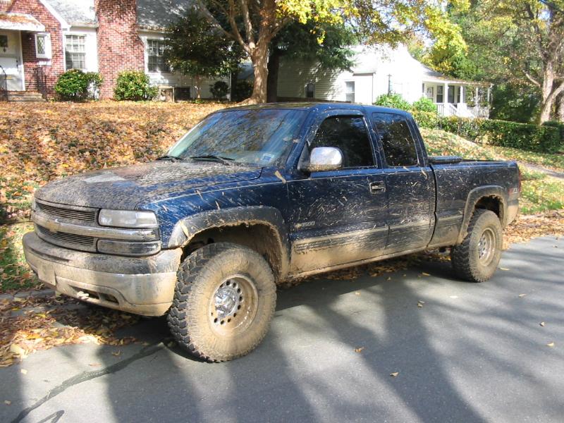 dk. blue, tinted windows, billet grille, '04 tails, 3/4 ton black fender flares, black housing clear corners, Sylvania Xenarc HID conversion headlamps........SOLD IT!!!