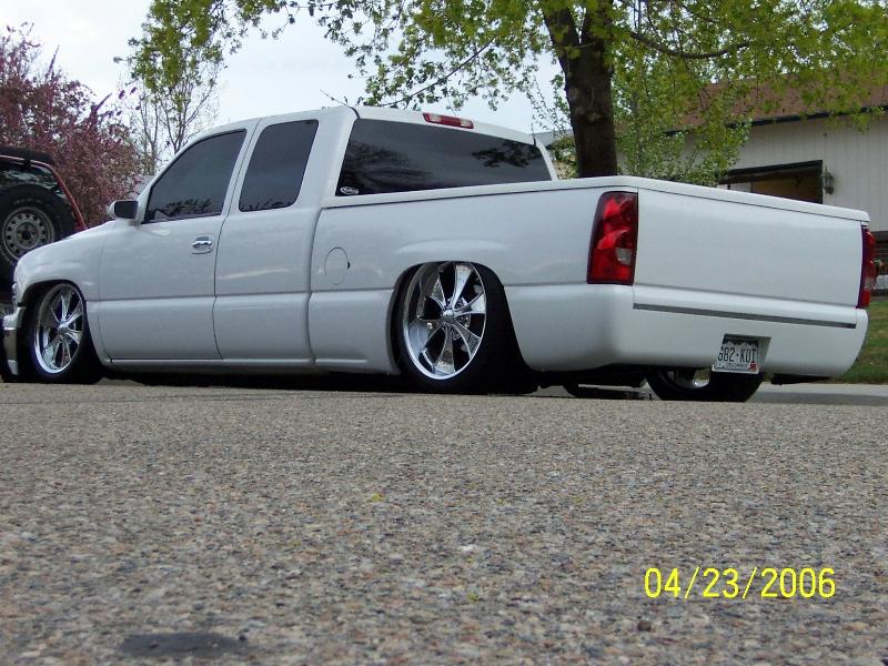 Shaved Tailgate,Molded rollpan,Escalade handles,04 tails, Street Scene signal mirrors,tahoe grill w/Billet. Trenz billet 3rd brake. clear corners, Gaylords Tonneau, bedrug,