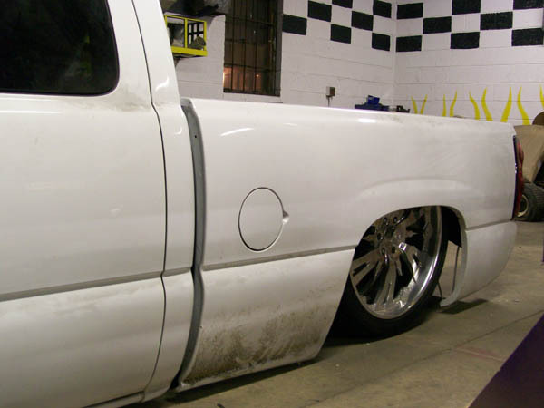 shaved handles, 3rd brake light, rain gutters, cab vents, gas door, full skin, bed stake pockets and sheet metal bed