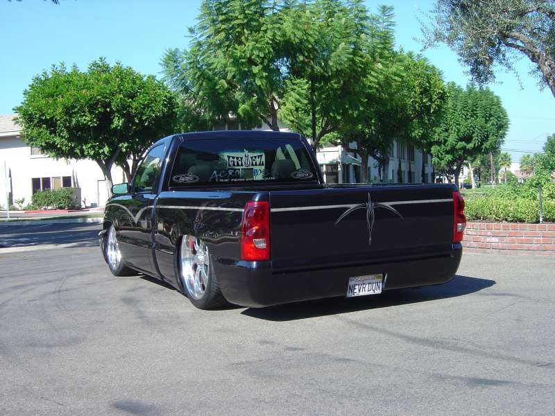 Shaved tailgate handle and rollpan by Sir Michaels. Trenz billet antenna. All body work done by Anaheim Prestige in Placentia, CA and Steve Vandemon of Absolute Custom Paint.