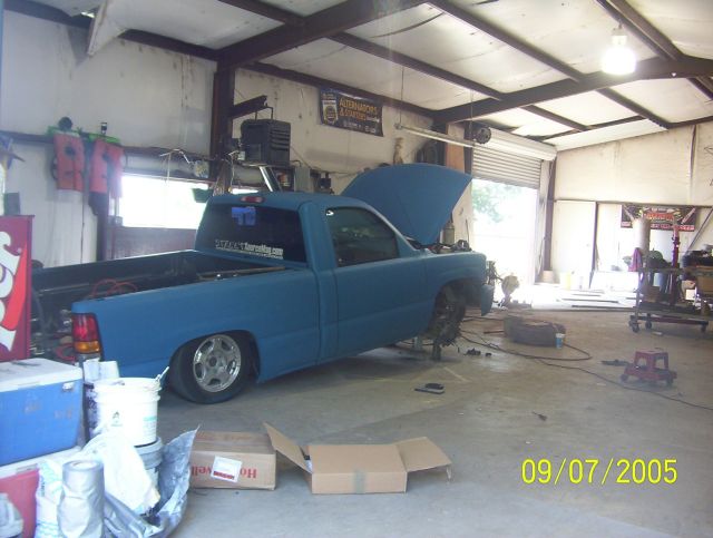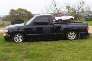 cab matte black and shaved...new fenders.new bed with raised floor need to be finished 20s