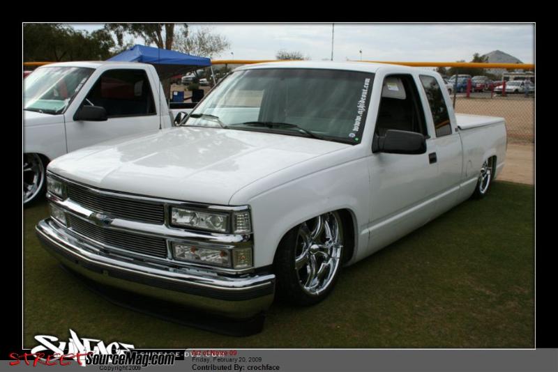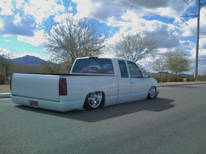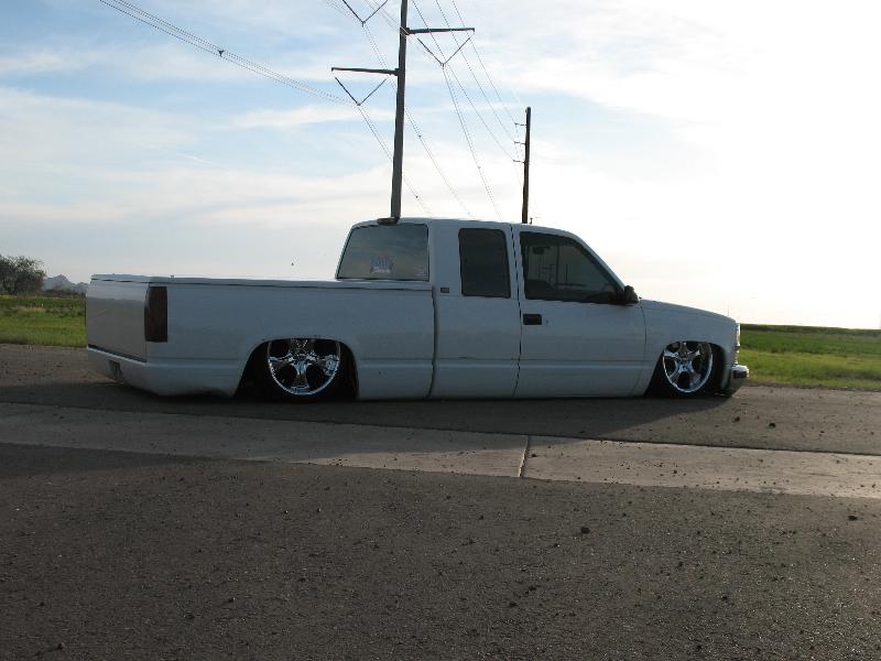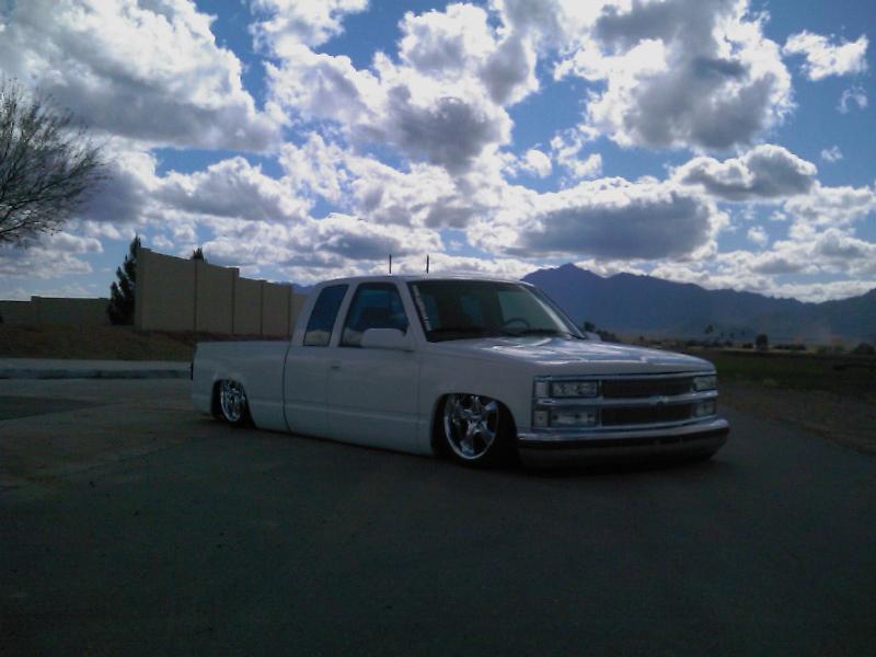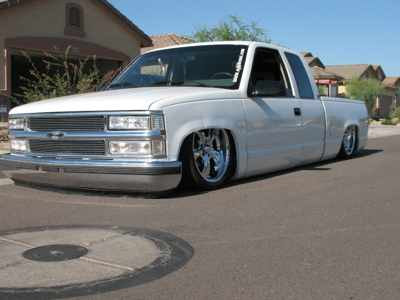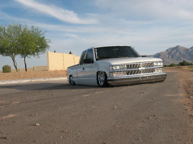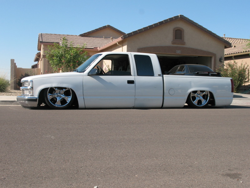 Slam 7s up front Slam 8's out back, cups up front, kp 6-link in the rear with a watts, Custom made bracket for York 209 EDC 8 SMC 1/2" valves, 15 gallons of air, AVS-9 switchbox controls the action :)