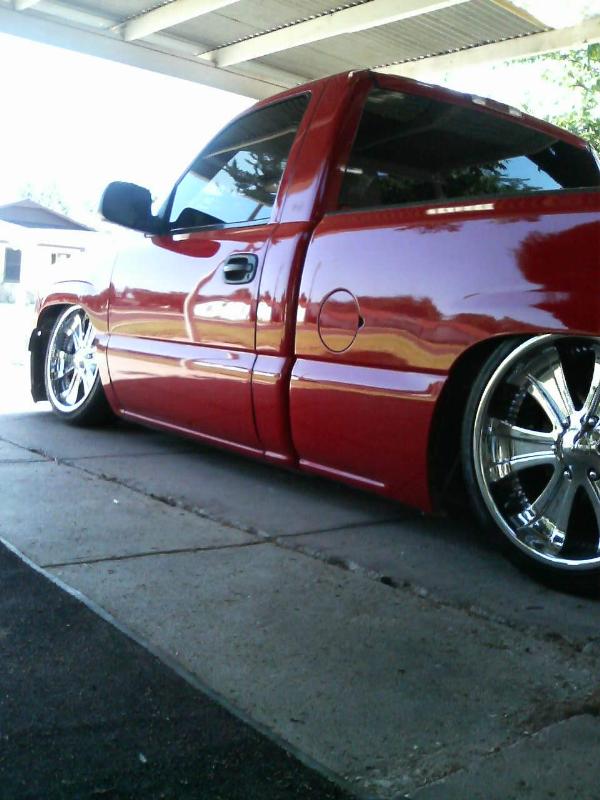 primer TW0-TONE WHITE AND RED, suidice doors, roll pan, shaved tailgate handle, shaved bed stake pockets, ss mirros,shaved handles, paint matched bow tie, flowmaster, removed moldings, devious customs fuel cell