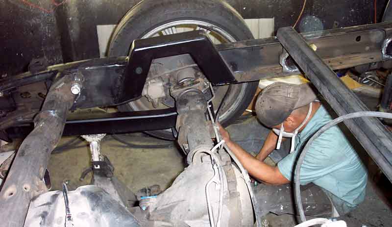 Back halfed, Fast bag system, 12 Gallon 1/2" port Tank, York engine driven compressor, 2 Firestone Compressors as back ups. 4 Slam Bags and changed the crossmember so i can lay frame. My line is 1/2" inner diameter Parker line and barb fittings. 4 Parker half inch valves in and 4- 3/8" Parker valves as dumps.