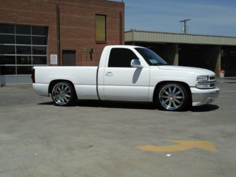 WHITE, Shaved tailgate, molded rollpan, shaved stake pockets, painted door handles, painted upper and lower bumper pads, painted mirrors, billet grille w/ billet bowtie