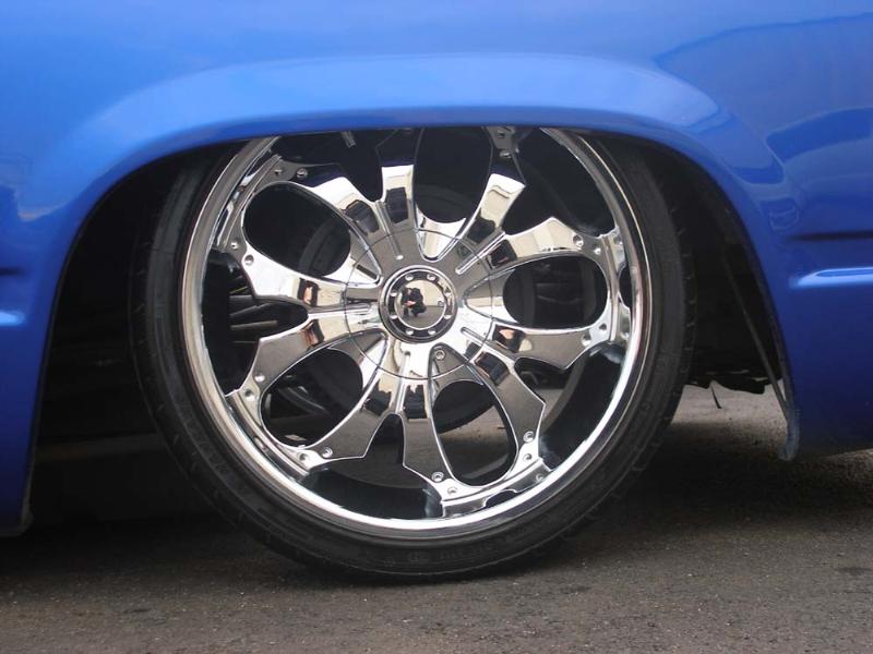 SHAVED TAILGATE, 3RD BRAKE LIGHT, ROLLPAN, CHROME FRONT BUMPER, CLEAR CORNERS, EURO TAILS, MIRRORS, DARK CLOROSEN BLUE PAINT