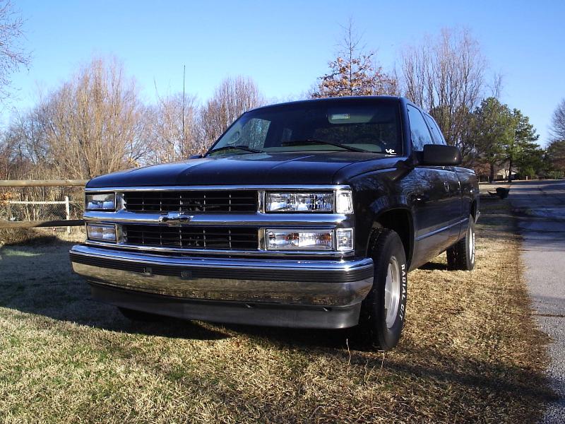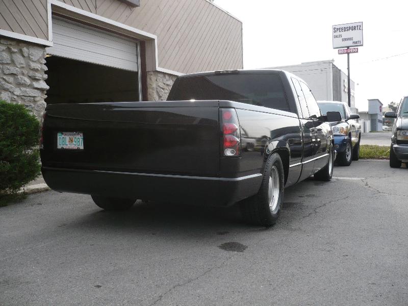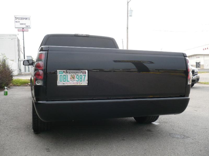 Chrome bowtie, TYC Clear Headlights, Clear Turn signals, Clear Corners, LED 3rd Brake Light, TYC Black Euro Taillights, 5% Tint, Smooth Roll pan, Tailgate handle fliped and shaved, License plate box in tailgate, Shaved Stake Pockets