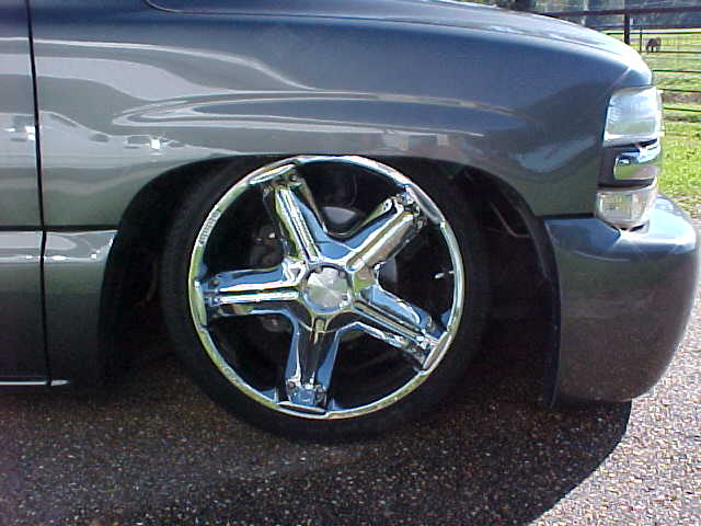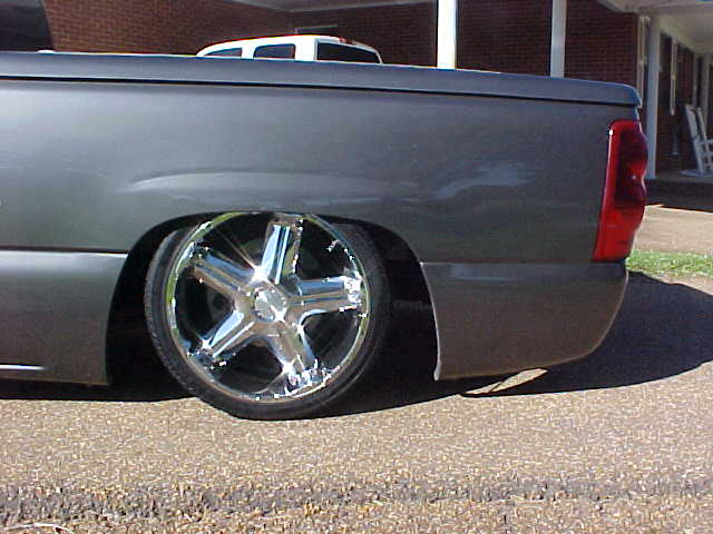 shaved tailgate handle, shaved emblems, molded rollpan, ss front bumper,smooth wiper cowl, ss mirrors, upper and lower billet grilles, LoRider bedcover, escalade door handles, 03 silverado taillights, billet shorty antenna,
