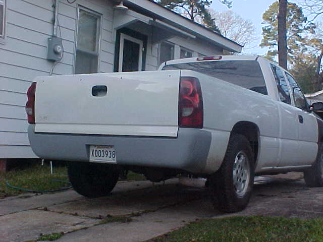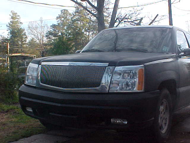 2005 Escalade front end with vertical billet grille, shaved tailgate handle and rear spoiler, molded in rollpan, sport mirrors