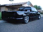 shaved rollpan and tailgate welded shut, shaved stake pockets, tailgate handle and tailights. Smoked LED's and third brake light, sheet metal bed. Billet grille, bowtie and antenna. Street Scene fiberglass wiper cowl.