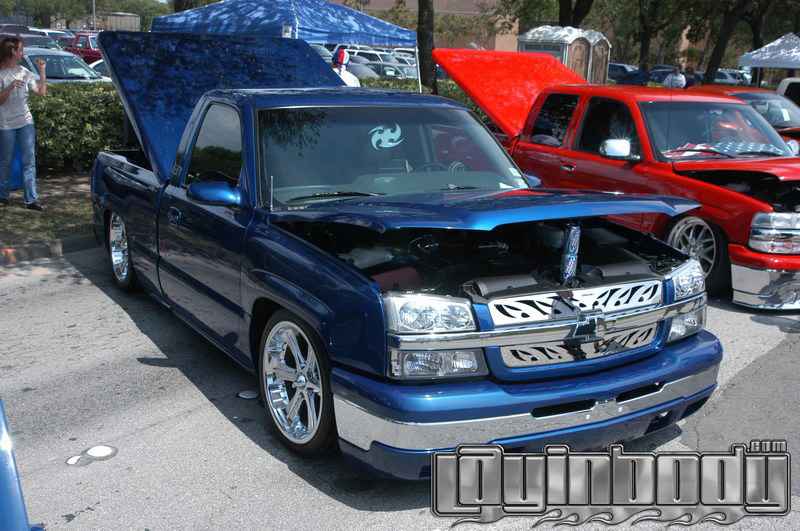 Gaylords bed cover, gelcoated to match truck, projector style headlights and clear bottom corners, Painted top and bottom front bumper, sport mirrors, Billet 8" antenna, Chrome bowtie emblem, chrome switchblade grille, Chrome double edge door handles, power bed cover lift, Steel F.B.I. roll pan, shaved tailgate, devious customs gas tank, dk cust. trans. crossmember