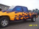 TRUE BLUE W/ BLUE ICE PEARL, YELLOW ORANGE AND RED FLAMES
