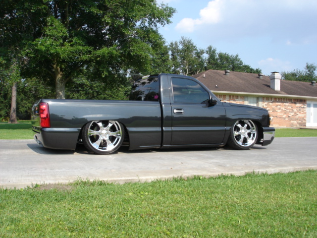 grippin billet door handles, shaved tailgate and roll pan, painted plastics.