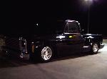 kinda black.. Crystal Black,with a 93 or 94 late Model Step-side bed, fiberglass bed cover, Billet Step Plates
