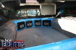 Alpine IVA-W200, 2 Scosche HD2250 amps, 2 Scosche HD1400 amps, Infinity Kappa 6.5's, Infinity 4x6 plates, tv and Infinity Kappa 6.5's in bed for the shows.