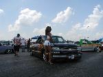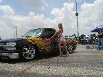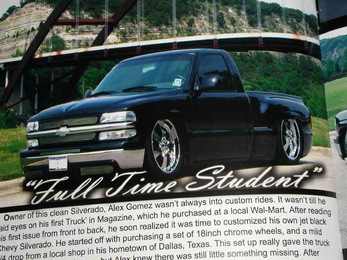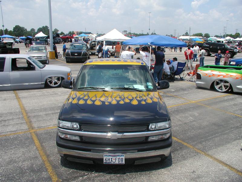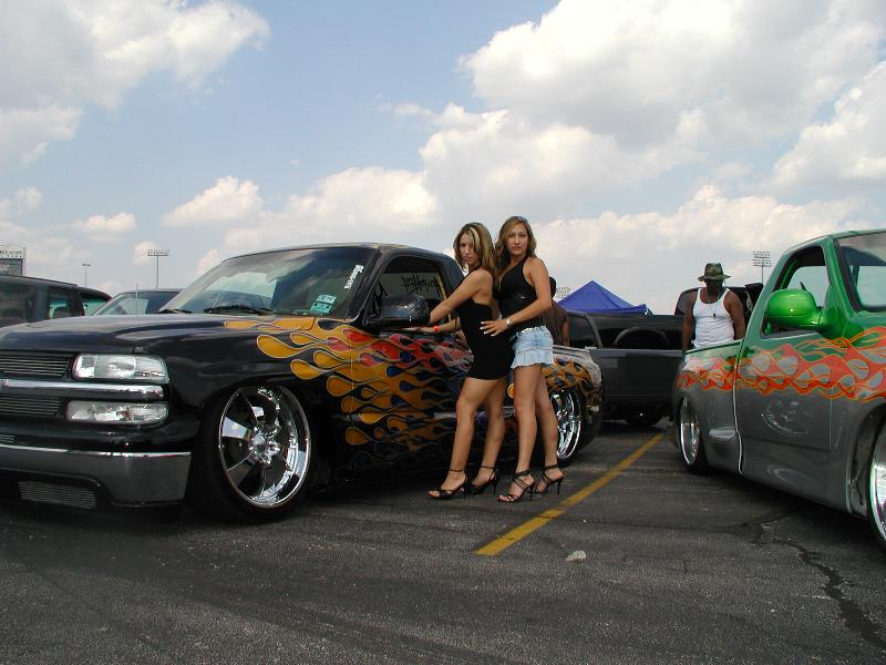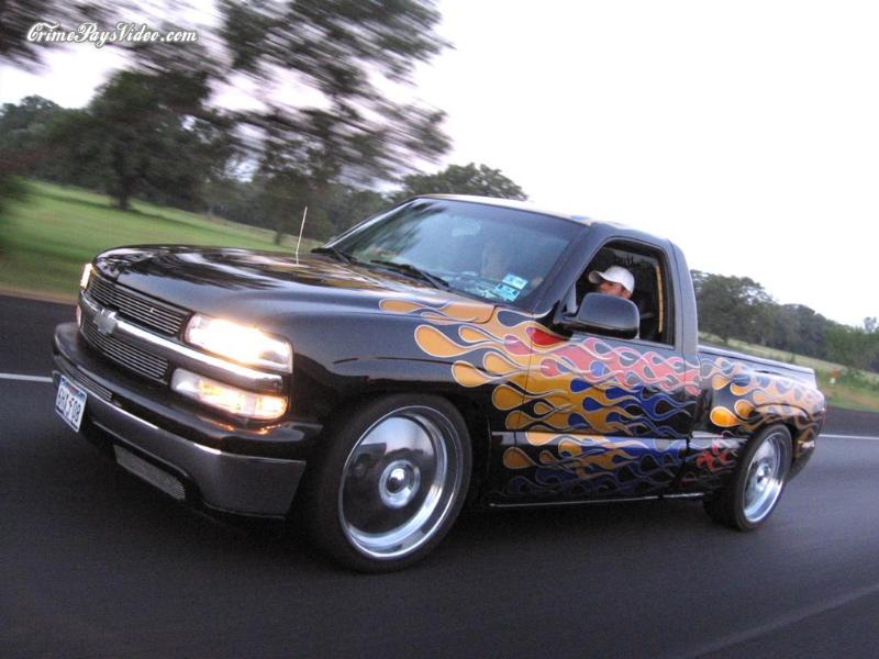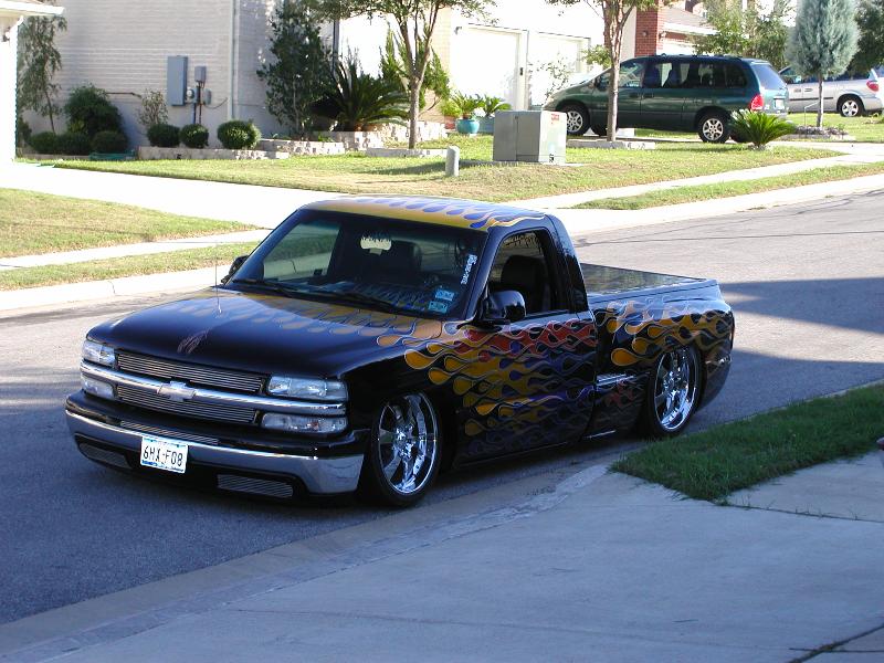 slam bags, 1/2" steel braided lines,450 E-valves, viar 380c running to a 5 gal. reserve tank both under the bed, and 2 nitrogen bottles in bed, tubbed to tuck 22s, custom SSC 2-link in the rear with y-link. (Work done by Bill at Southern Style Customs in Austin Texas (512)-825-7369)