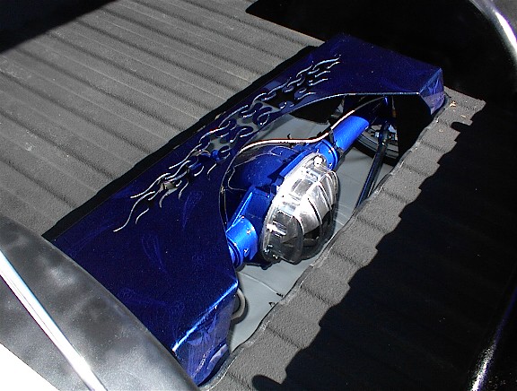 shaved tailgate handle, AMP billet gas filler, Trenz billet grill, Trenz billet bowtie, Street Scene cal vu mirrors,