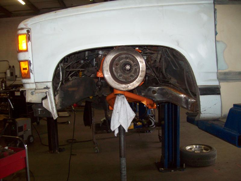 plc white primer 4 now, movin cab and front end back a whole half in so front tries are in middle of the fenders,should look munch better done this way.