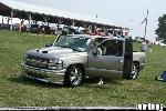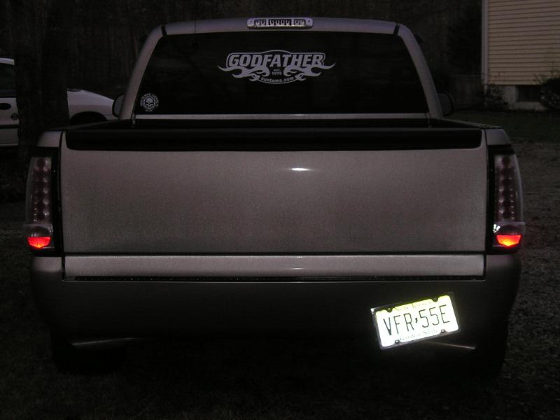 Molded rollpan with 45 degree license plate box, shaved tailgate, shaved emblems and trim, shaved fingerhole from stock gas door, ram air hood, chrome bumper top, chrome bumper valance, billet grille, custom front chevy logo, billet antenna, LED taillights, clear corner markers, chrome headlights, 20" chrome wheels, chrome door handles, underbody neons, and more that I can't think of right now.