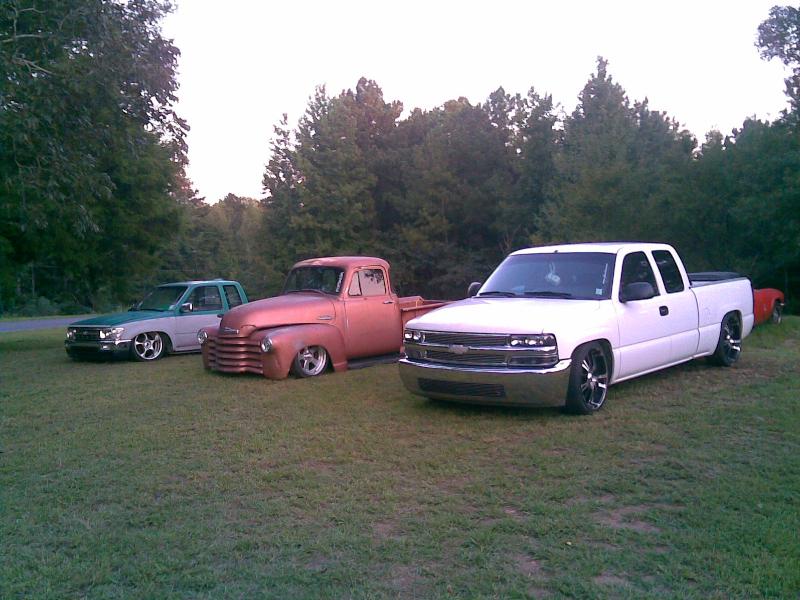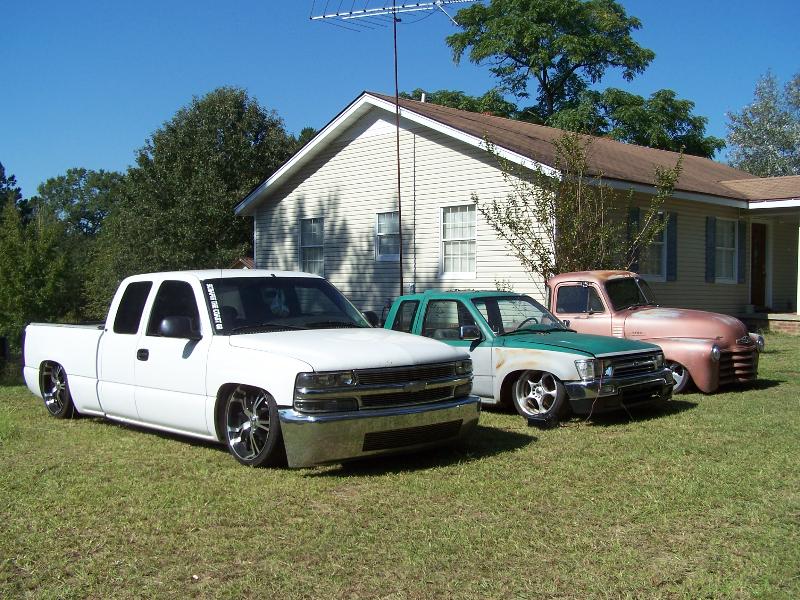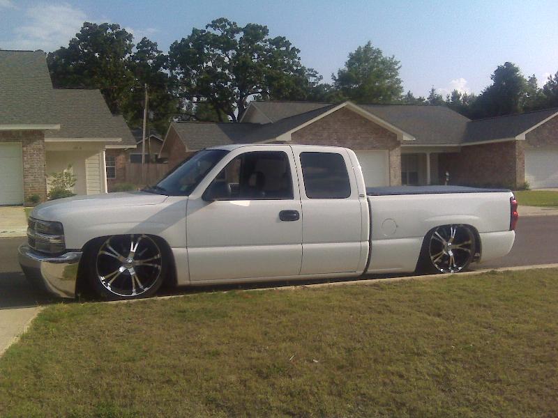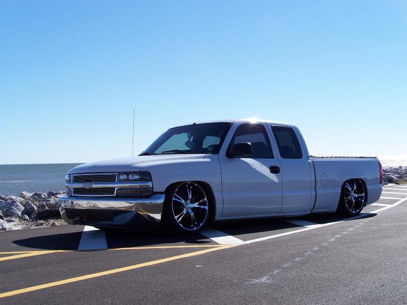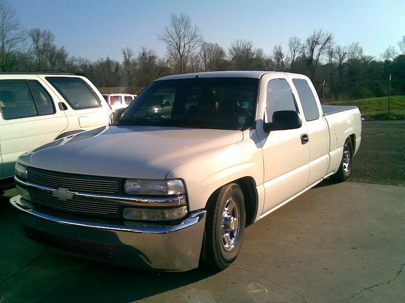 Chrome Tahoe grill with billet, smoked headlights with 12000k HIDs smoked corner lights and wierd chrome front bumper with billet inserts. 05 taillights rollpan