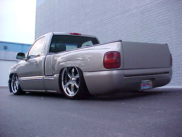 caddie handles,gmc moulding,shaved t-gate handle,rollpan,painted bumper caps clears,billet grill