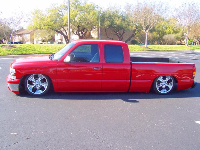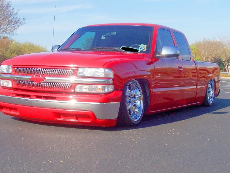 cadillac door handles, red neon underbody. Painted grille, emblem bumper cover and valence. Roll pan and stake wholes welded up and painted.