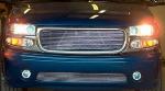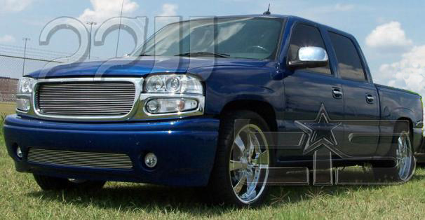 The exterior has had the front clip changed over to the denali front end, with billet inserts inserted into the grill and the bumper. Also has some upgraded projector headlamps and park lamps. The factory door handles were replaced the the escalade style painted to match the truck with the chrome pulls, along with the tailgate handle. The windows have been tinted 20% all the way around over the factory tint. It's sitting on some chrome 22s as well.