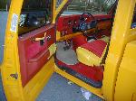 its has a yellow @ red seat with the dash is painted yellow with red velvet covering over the dash. it also has red carpiet with tinted windows.