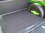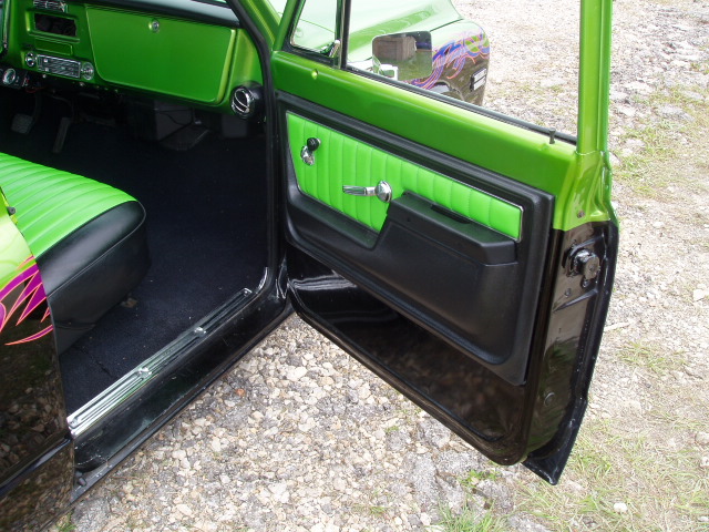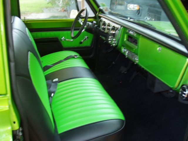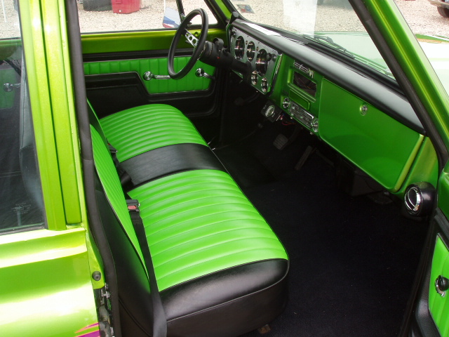 Black Leather w/ Enduratex Lime Cooler inserts. Painted two tone black and antifreeze green to match exterior of truck.