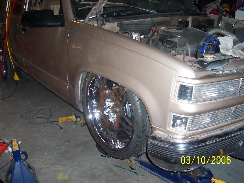 over at a friends house getting cut up to lay out on 22"s, got slam bagz triangulted 4 link GC valves EDC and 8 gal chrome tank