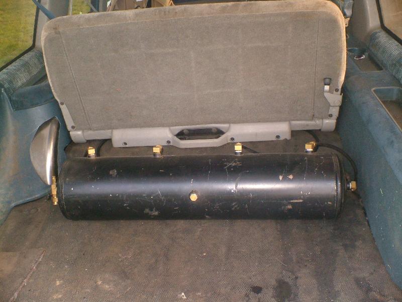 2600 lb bags all around. 2 link( yes i know 2 links are shit but to keep the 3rd row seat , 2 links the only way to go )w