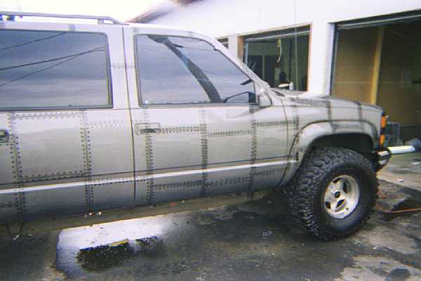 All of the paint work was done myself, I put 5176 rivits on outside and door jams, each square was scuffed to give a brushed metal appearance,