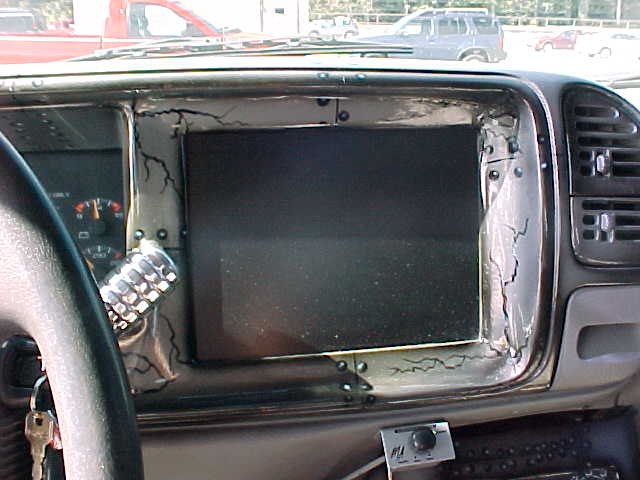 We flushed a 10in. TFT screen into dash, built a full fiberglass coffin that houses 4, 12in. subs and a flush mount amp the top.